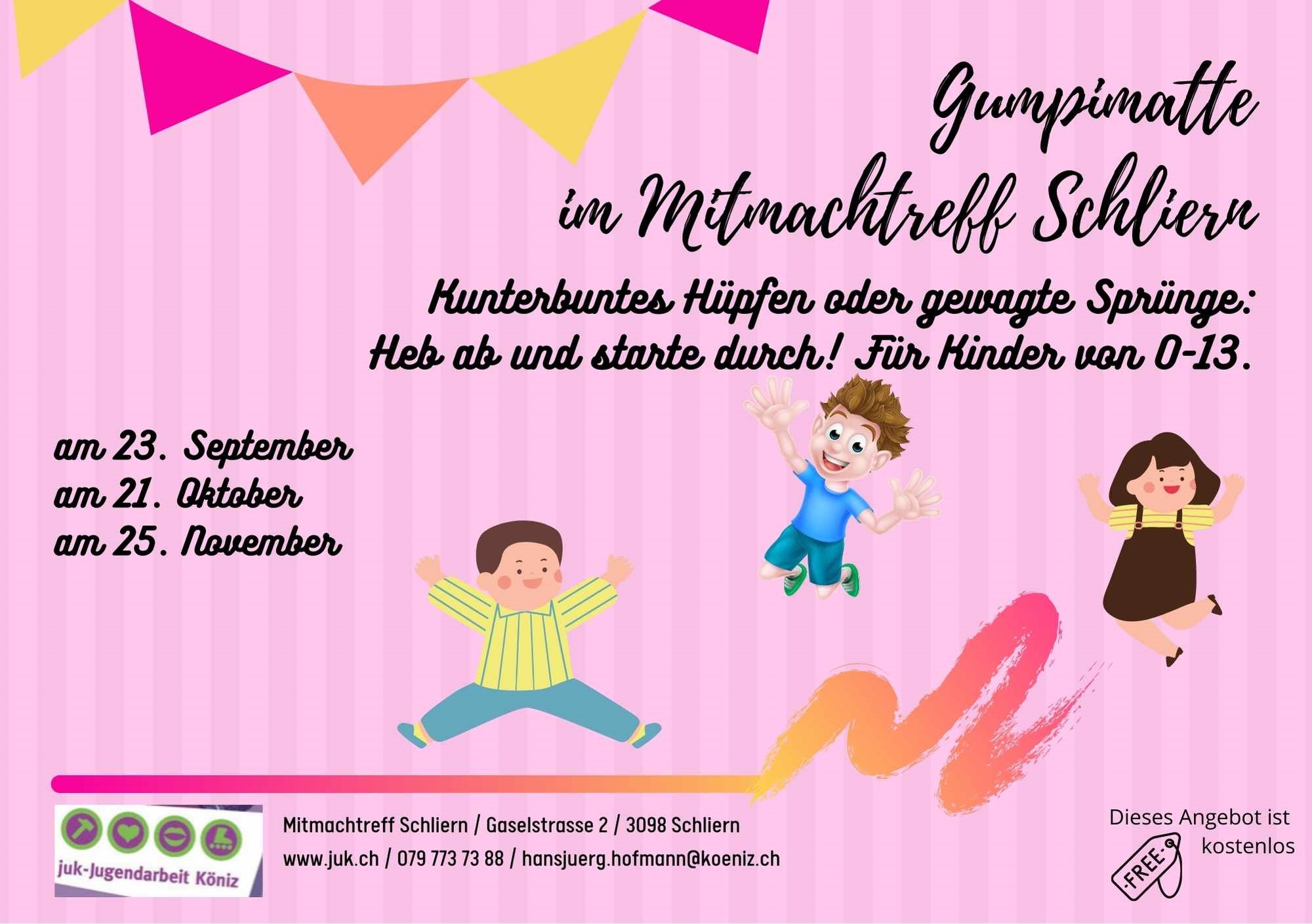 Grosse Gumpimatte am Donnerstag 23.9., 21.10. und 25.11. im Treff